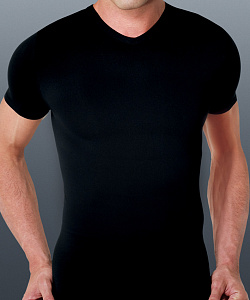 Мужская футболка из microfibra с V-образным вырезом и короткими рукавами. С бесшовной конструкцией (без боковых швов). Изделия из microfibra мягки и комфортны, очень практичны и просты в уходе, отлично сохраняют цвет (даже после многочисленных стирок), не требуют глажения, имеют хорошую формоустойчивость, гигиеничны, позволяют коже дышать, легко выводят влагу (пот) наружу не впитывая её.