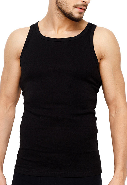 Классическая мужская майка из натурального хлопка. С круглым вырезом и широкими бретелями.