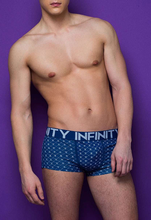 Мужские облегающие трусы из эластичного принтованного хлопкового полотна.Хлоковая модель мужских трусов с рисунком-принтом на ткани "якорь", на поясе пришита нетугая резинка с фирменной надписью.