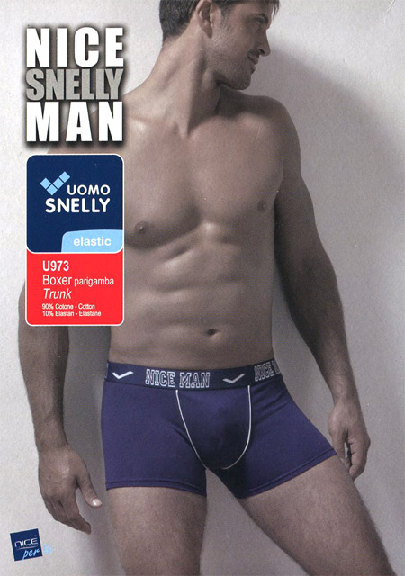 Мужские трусы-боксеры из хлопка с эластаном, на поясе широкая резинка с круговой надписью "Nice Man", спереди контрастная отделка.