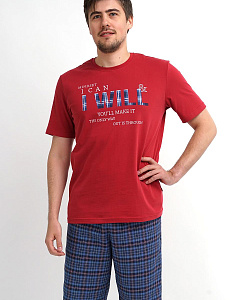 Комплект для дома, состоящий из футболки и шорт. Футболка дополнена дизайнерским принтом,декоративной обтачкой и стильной нашивкой. Шорты комфортного кроя с модным принтом в клетку.
