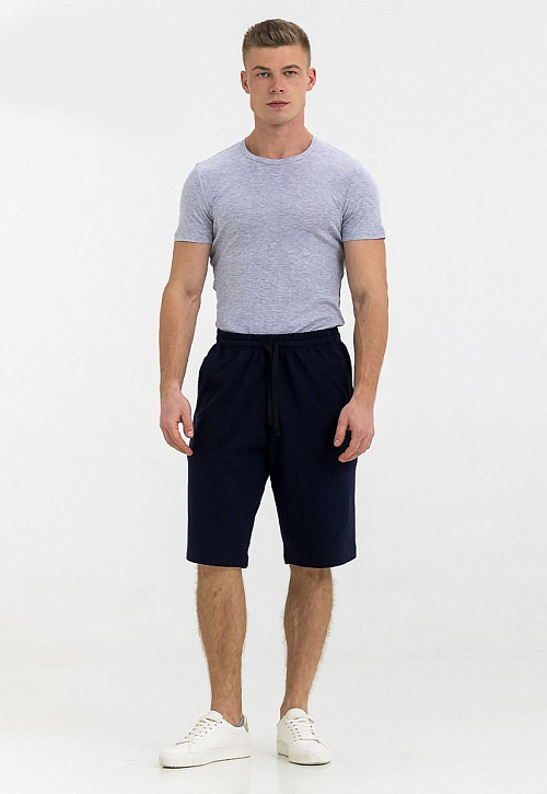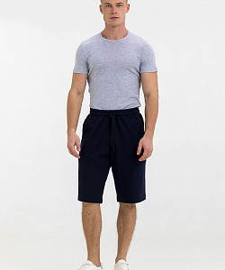Мужские шорты из полотна пике, среднего объема, карманы наклонные. Пояс цельнокроенный с резинкой и шнуром. На задней детали карман.
