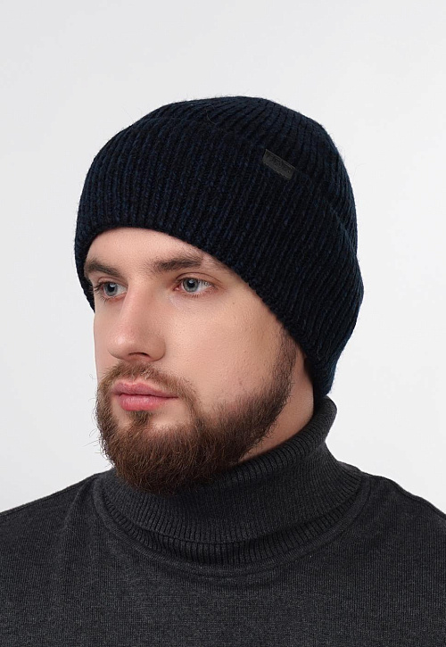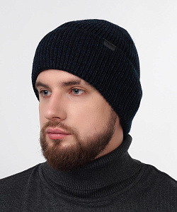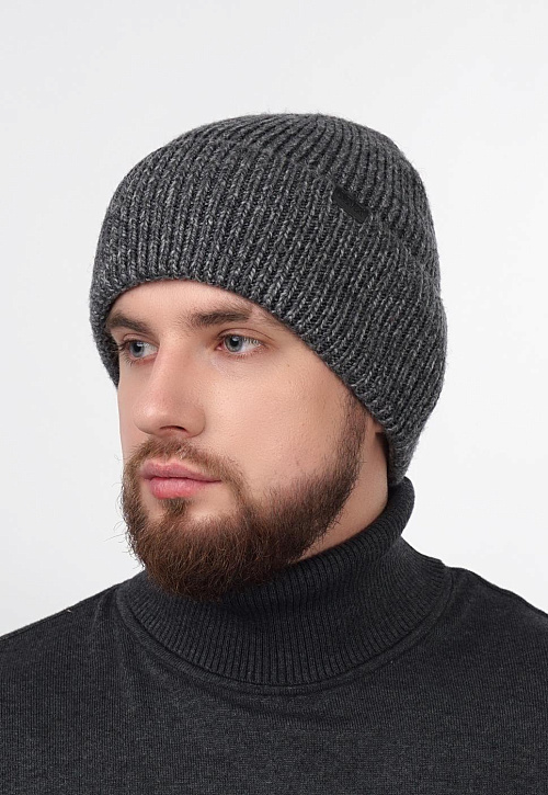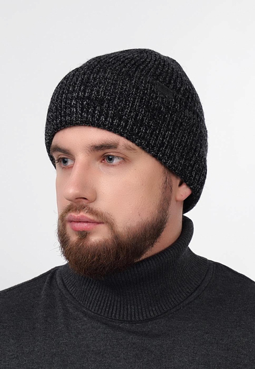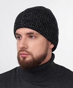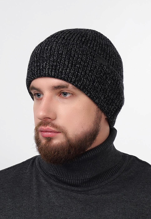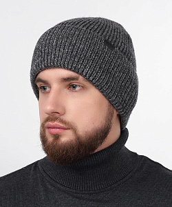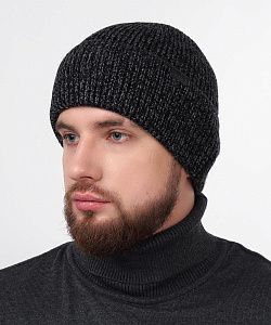Мужкая шапка с отворотом, связана ластичным переплетением. Декорирована стильной нашивкой. Идеально подойдёт для зимы.