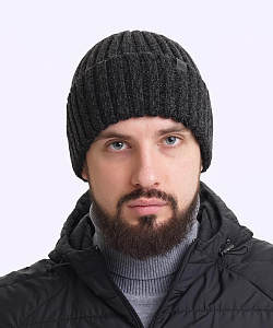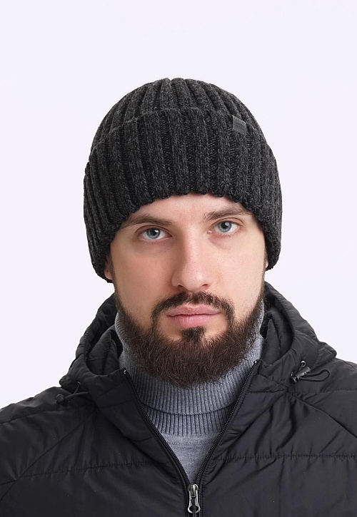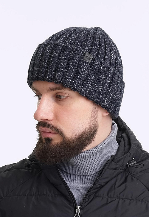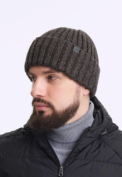 Мужская шапка из скрученой пряжи с отворотом, декорирована стильной нашивкой- логотип. Идеально подойдёт для холодной осени, тёплой зимы.