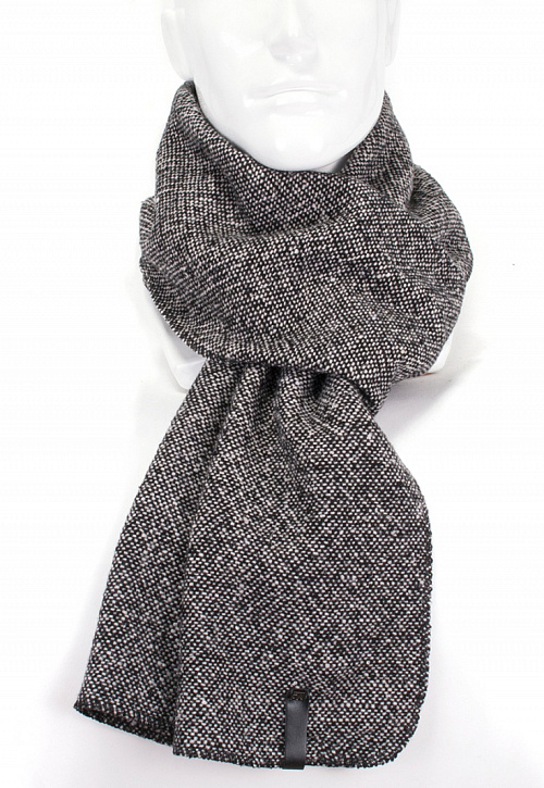 Палантин из шерстяной ткани. Отделан фирменным кожаным элементом и шильдиком из металла.