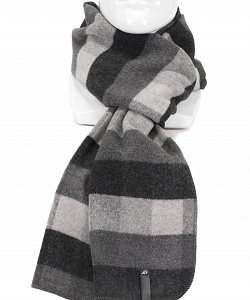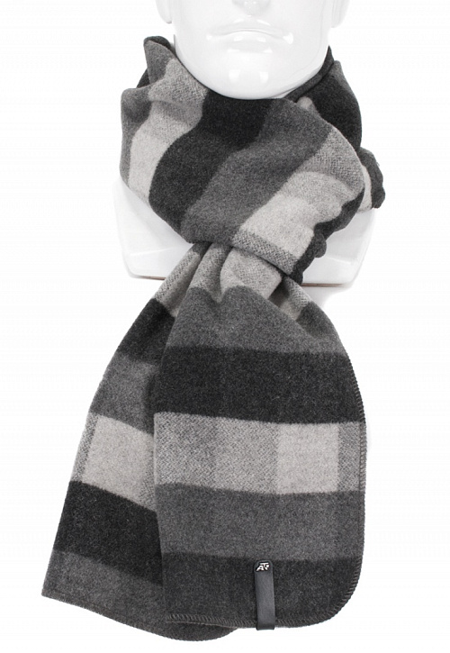 Палантин из шерстяной ткани. Отделан фирменным кожаным элементом и шильдиком из металла.