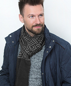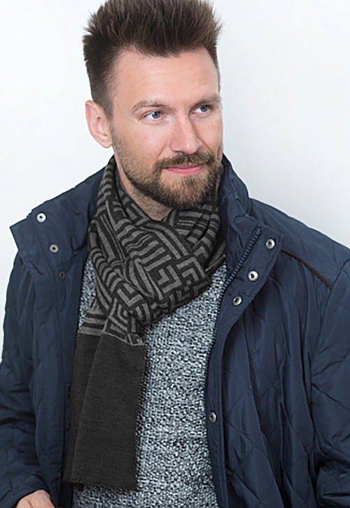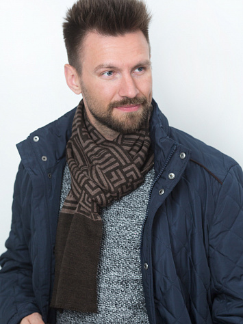 Теплый мужской шарф с твидовым рисунком, выполнен из высококачественной натуральной пряжи.