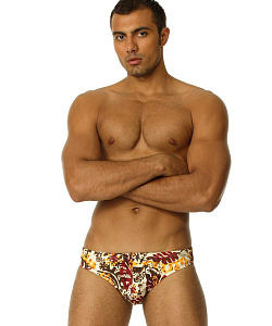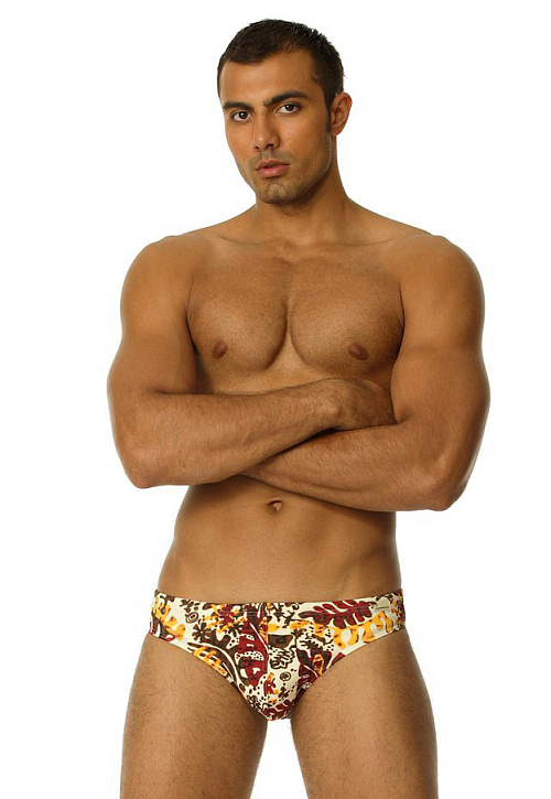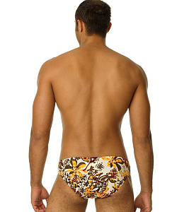 Стильные молодежные плавки анатомической конструкции на низкой посадке с узким бочком. Шнурок по талии потайного типа для лучшей фиксации на фигуре. Плавки выполнены из яркой принтованной ткани в стиле "Огненные Джунгли".