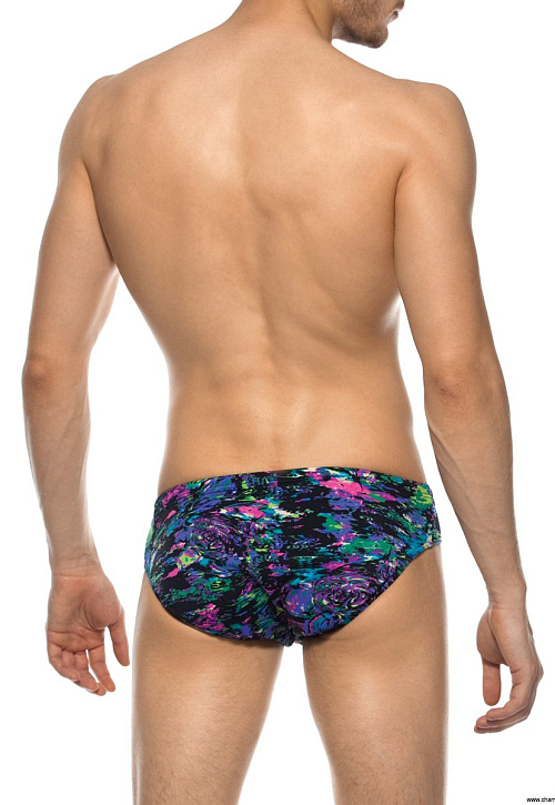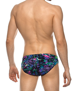 Плавки для мужчин, глубокие,высокой посадки с широким бочком.Шнурок по талии потайного типа для лучшей фиксации на фигуре.Плавки выполнены из ткани с ярким динамичным рисунком в стиле "Абстракция".