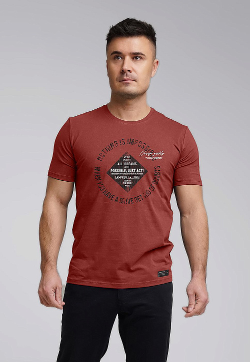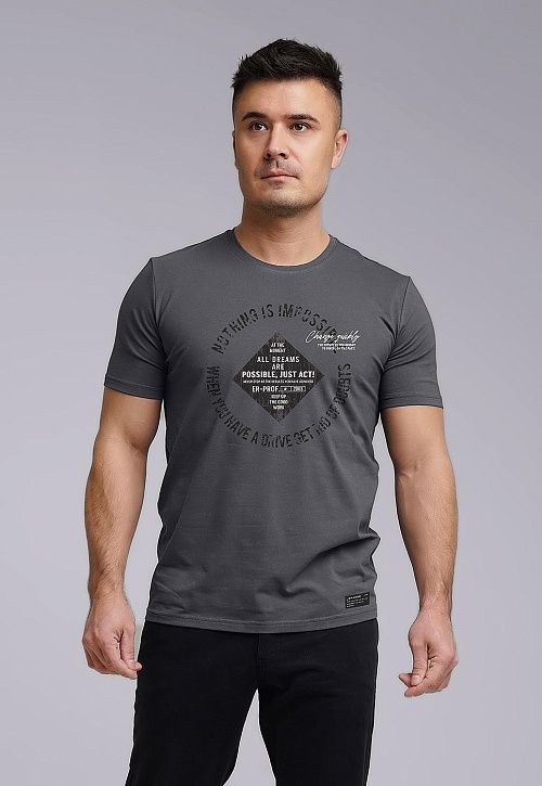 Футболка из дышащего трикотажного полотна с коротким рукавом и округлой горловиной. Футболка дополнена принтом. Данная модель прекрасное дополнение к джинсами. Отличный вариант для прогулки или похода на работу.