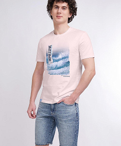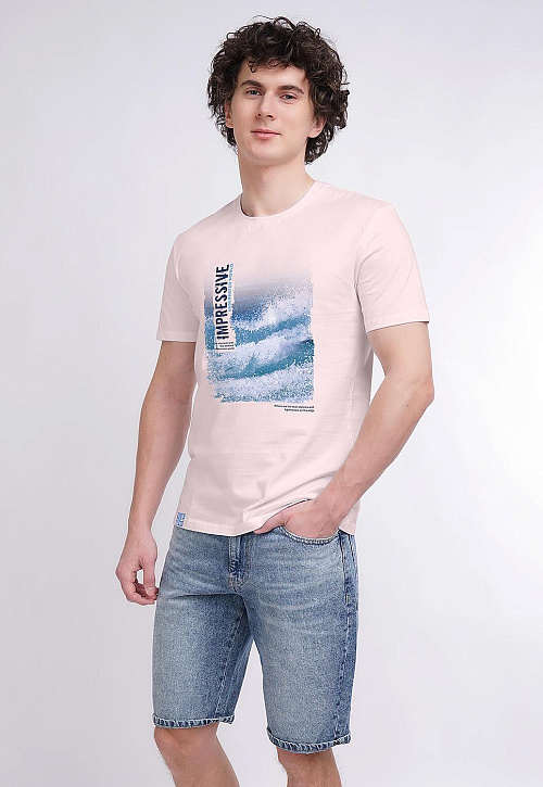 Модная мужская футболка с круглым вырезом горловины из приятного трикотажного полотна из хлопка. Изделие дополнено контрастным фотографичным принтом по переду и не менее стильной имиджевой нашивкой. Модель отлично подойдет для спорта и отдыха.