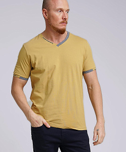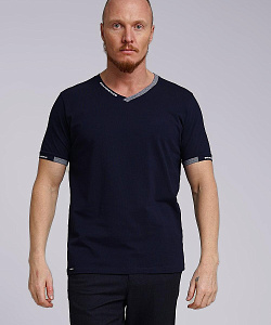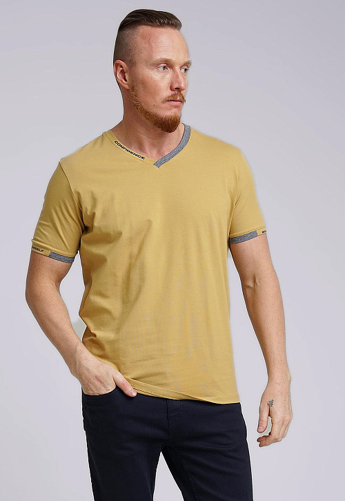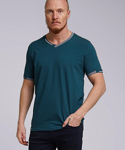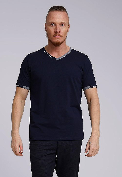 Футболка мужская из дышащего хлопкового полотна. Модель с V-образным вырезом горловины, коротким втачным рукавом. Прекрасно сочетается с джинсами или шортами. Модель дополнена принтом и имиджевой нашивкой.