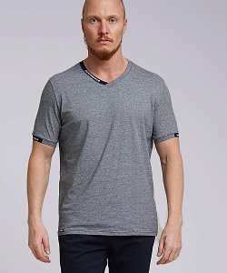 Футболка мужская из дышащего хлопкового полотна. Модель с V-образным вырезом горловины, коротким втачным рукавом. Прекрасно сочетается с джинсами или шортами. Модель дополнена принтом и имиджевой нашивкой.