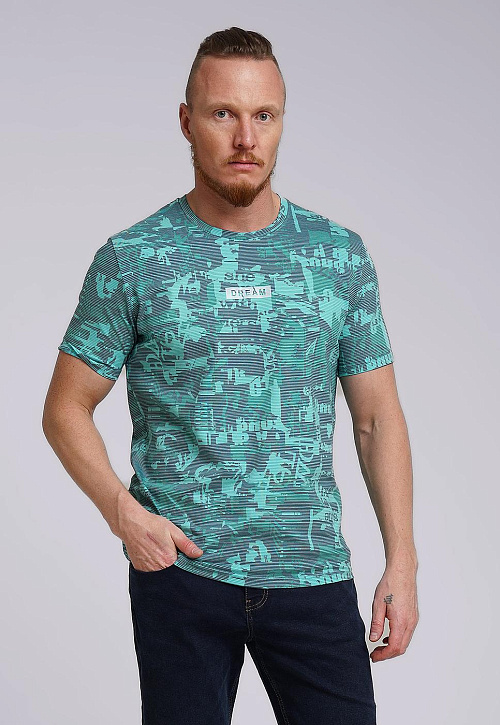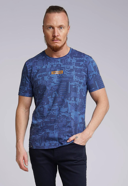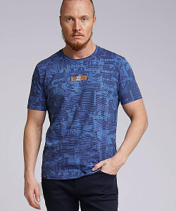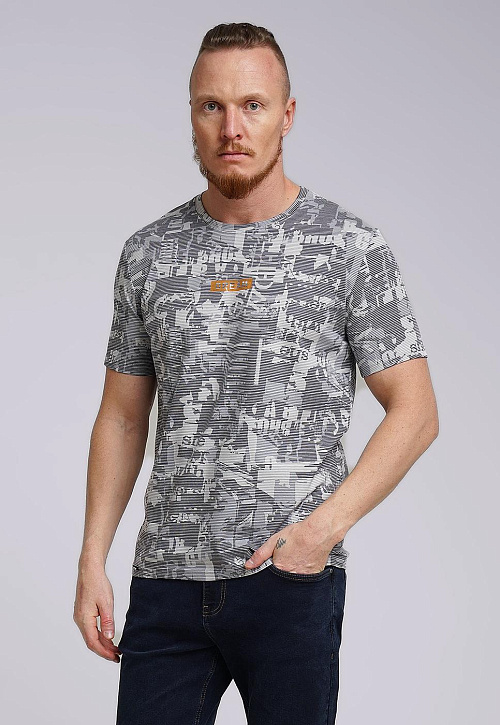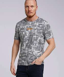 Футболка из дышащего хлопкового полотна с небольшим добавлением лайкры для прочности и износостойкости. Модель с округлой горловиной и коротким рукавом, имиджевой нашивкой и принтом. Отличное решение для прогулки.