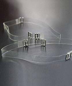 Бретель прозрачная силиконовая с металлическими держателями с регуляторами длины. Ширина бретельки 12 мм.