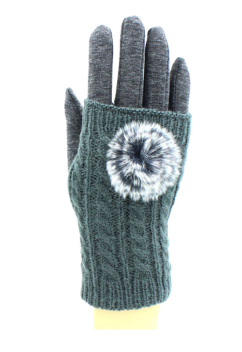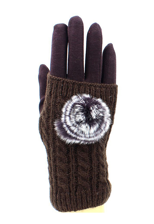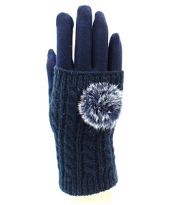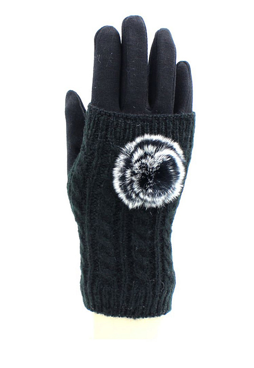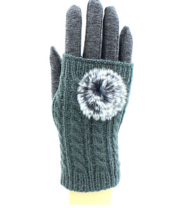 Перчатки-митенки женские "Hobby Line", ажурной вязки из кос, декорированы пушком.