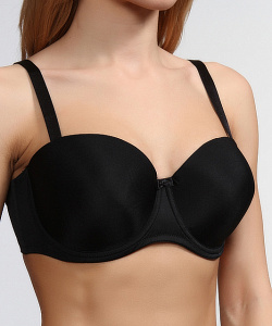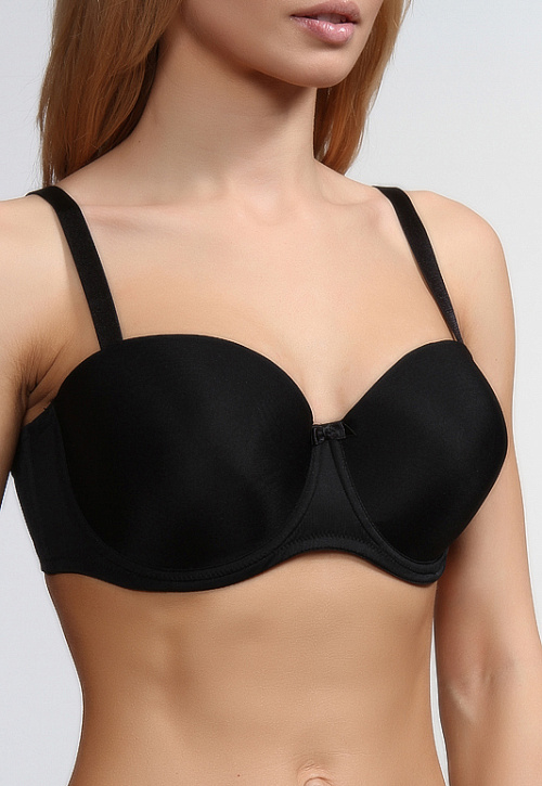 Бюстгальтер-балконет Milavitsa 12140 с плотной формованной чашкой из коллекции "Классика". Бюстгальтер выполнен из гладкого трикотажного полотна. Спинка широкая. Упругие пластины в боковых деталях стана не дают бюстгальтеру скручиваться, обеспечивая надежную посадку. Бретели отстегиваются сзади и их можно перекрестить при необходимости. Впереди бюстгальтер декорирован атласным бантиком. Гладкая однотонная ткань, отсутствие дополнительных украшений позволяют носить этот бюстгальтер практически с любой одеждой. Бюстгальтер-балконет прекрасно подходит для платьев и топов с открытой линией плеч.