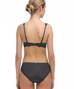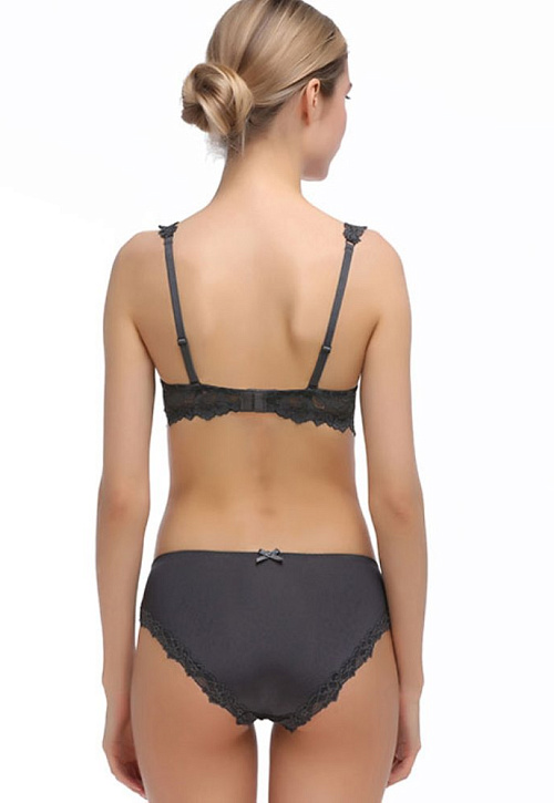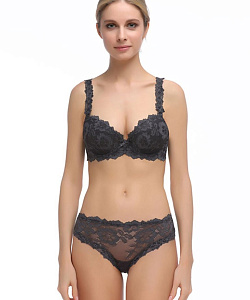 Модный кружевной комплект из коллекции ВИВИАН красивого антрацитового оттенка - поддерживающий бюстгальтер балконет с формованной чашкой на каркасах модель 7581 и трусики слипы со средней линией талии модель 7682. Высота бока трусиков около 7 см. Выполнен из мягкого эластичного ажурного кружева с крупным цветочным орнаментом и гладкого эластичного полотна с микрофиброй. Комплект не распаровывается, укомплектован трусиками в соответствии с подгрудным объемом: 65 - XS, 70 - S, 75 - M, 80 - L, 85 - XL, 90 - 2XL.