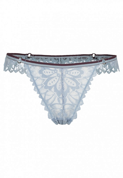 Прозрачные трусики танга светло голубого цвета.