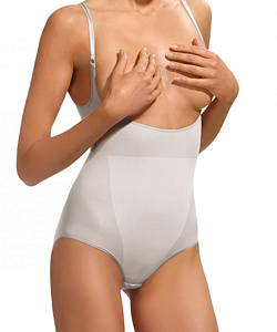 Боди на тонких бретелях сильной степени коррекции и вырезом под грудью и регулируемыми бретелями Controlbody Open-Up Plus, с антибактериальной ластовицей. Три ряда крючков для регулировки размера. Сокращение объема на 2 размера. Великолепная поддержка даже самых больших размеров. Придает изящный внешний вид, сокращает объем на один размер.