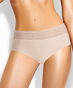 Трусы шорты комфортной посадки из хлопкового полотна с добавлением эластана. По талии широкое кружево.