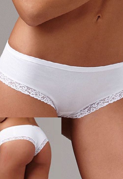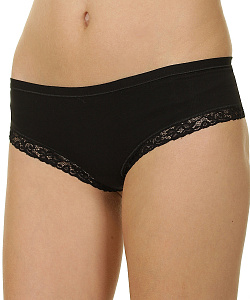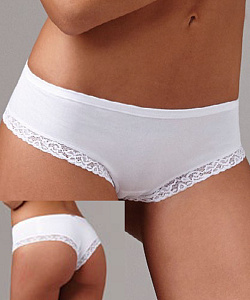 Однотонные трусы-брифы из мягкого эластичного смесового полотна с большим содержанием хлопка и модала. Широкий бочок, средняя посадка. Отделка проймы передней детали - кружево.