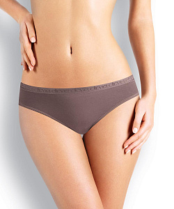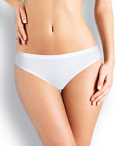 Трусы-бикини женские из эластичного полотна с хлопком и модалом в составе. Обработка по талии - фирменная жаккардовая резинка, по ноге - узкая окантовка.