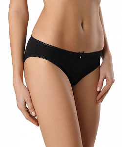Однотонные трусы "бикини" сделаны из удобного, приятного к телу и практичного трикотажа с высоким содержанием хлопка. Комфортное, дышащее и устойчивое к многочисленным стиркам белье станет Вашим любимым повседневным вариантом. Трусики украшены на талии и ножках эластичной тесьмой. Верх дополнен небольшим декоративным бантиком.