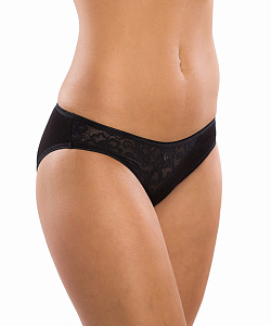 Трусы из эластичного трикотажного полотна и кружева. Нижний и верхние края модели обработаны эластичной тесьмой, что обеспечивает идеальное прилегание белья. Ластовица двойная, с внутренним слоем из натурального хлопка.