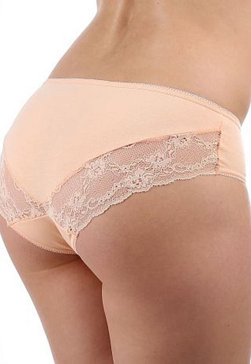 Трусики слип с заниженной линией талии. Удобная хлопковая модель с добавлением эластана, сзади трусики украшены мягким, эластичный кружевом.