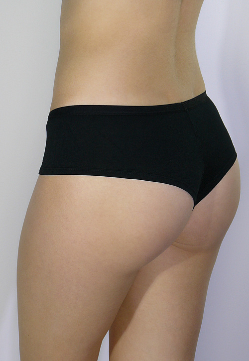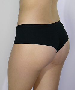 Трусики шорты-стринг очень интересного кроя — задняя деталь на половину открывает ягодицы. Они выполнены из мягкого натурального хлопка с добавлением лайкры. Очень мягкие и эластичные трусы от Alla Buone гипоаллергенны, дышащая ткань и плоские швы делают их незаметными для Вас.