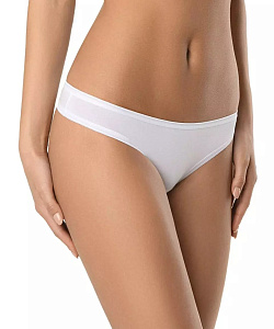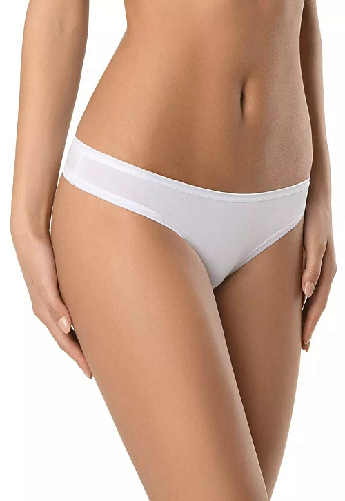 Трусы женские "BIKINI" из однотонного трикотажного полотна. Верх изделия и ножки обработаны притачной эластичной тесьмой.