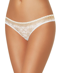 Мини - стринги с декоративной резинкой по поясу и ножке, спереди полностью кружевные с золотой тесьмой по поясу.
