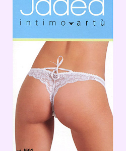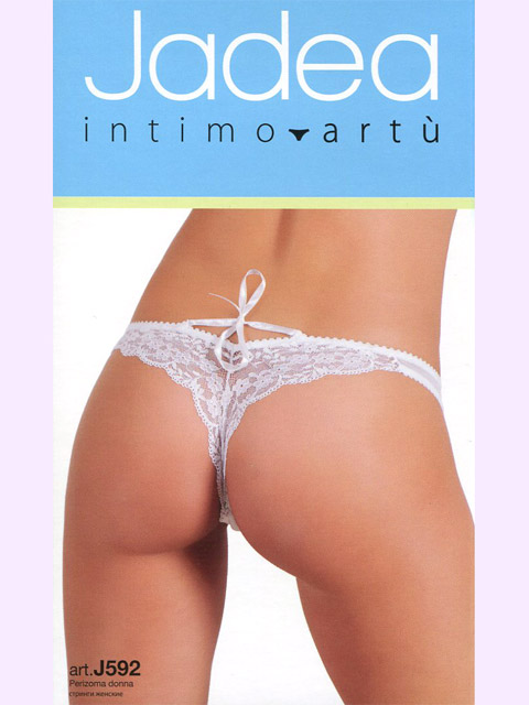 Стринги с заниженной талией из хлопка с эластаном, задняя часть из шелковистого эластичного кружева, с декоративным вырезом на атласной ленточке, отделка ажурной резинкой, спереди украшены кружевными вставками.