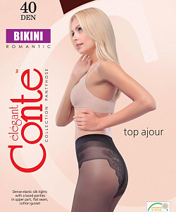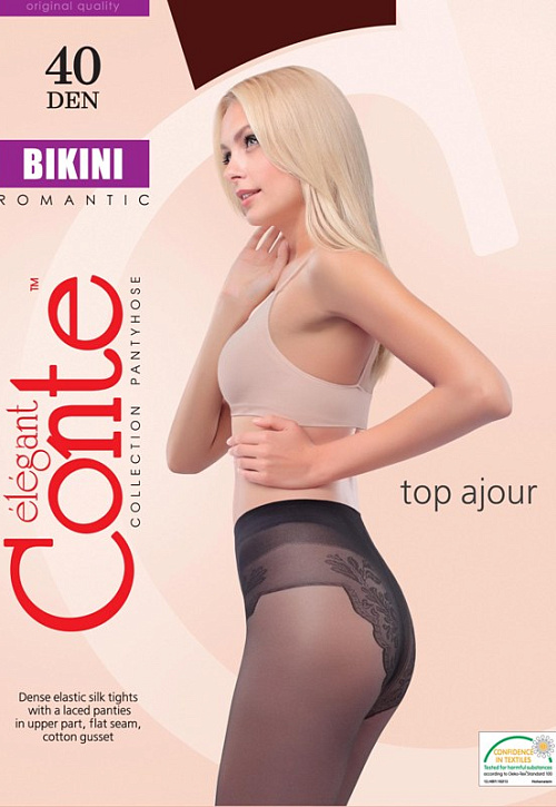Плотные эластичные шелковистые колготки с ажурными трусиками в верхней части, плоский шов, хлопковая ластовица.