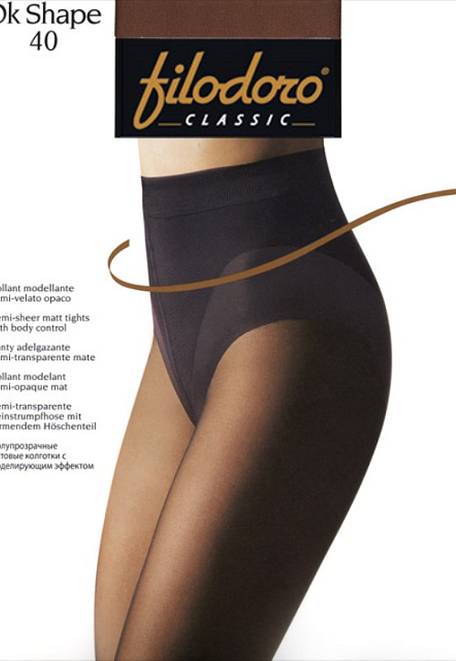 Матовые полупрозрачные колготки с лайкрой двойной обкрутки, плотностью 40 ден, формованные, с укрепленным мыском, плоскими швами и поддерживающими трусиками-слип с х/б ластовицей, моделирующими фигуру.