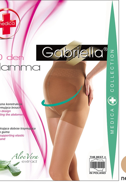 Поддерживающие колготки для беременных серии MAMMA от польского бренда Gabriella оснащены мягкой широкой резинкой, которая надежно фиксирует модель на талии. Верхняя часть колготок дополнительно усилена в области поясницы, что обеспечивает комфорт и способствует снятию мышечного напряжения. Пропитка из экстракта алоэ успокаивает и тонизирует кожу. Модель нежно облегает животик будущей мамы, не пережимая его и не оставляя следов на коже.