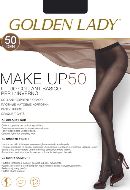 Плотные (50 ден) непрозрачные колготки на каждый день, однородные по всей длине.