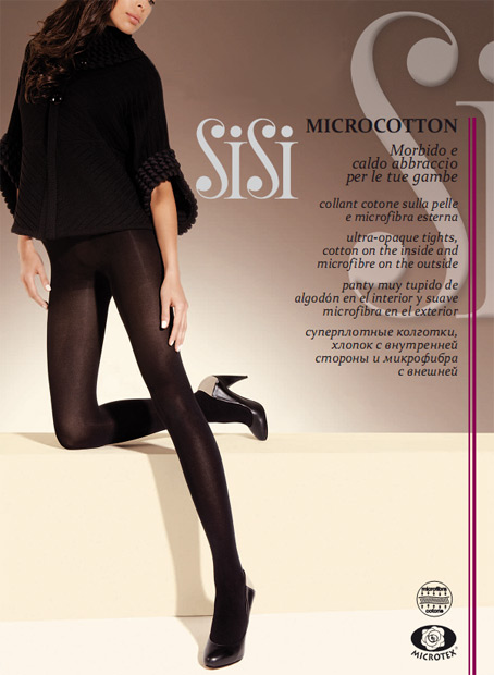 Двухслойные колготки Sisi. Внутренняя сторона — хлопок, внешняя — микрофибра, однородные, непрозрачные, без штанишек с гигиенической ластовицей.