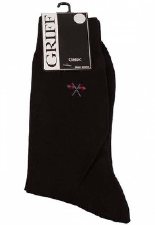 Хлопковые мужские носки с комфортной широкой резинкой, по бокам цветной рисунок "флажки".