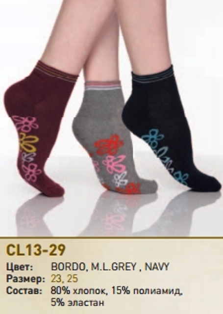 Носки женские укороченной длины, с принтом "цветочки" на стопе и в полоску по верхнему краю.