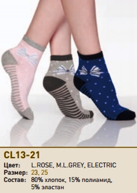Носки женские укороченной длины, с принтом "в горошек" и "бантик", на стопе в полоску.