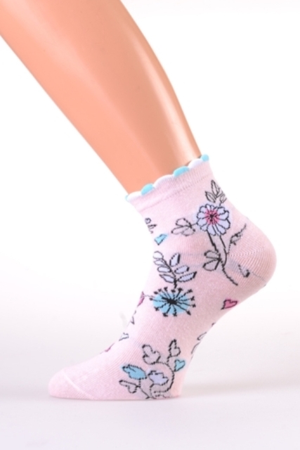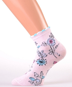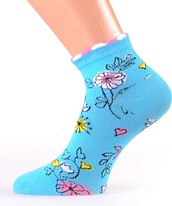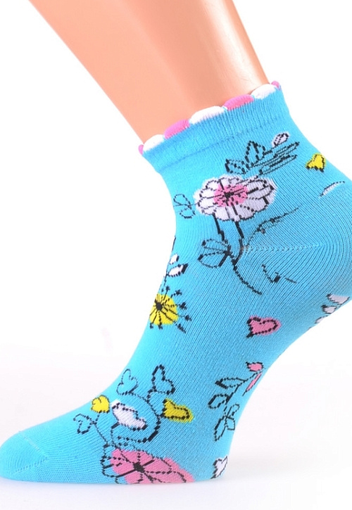 Носки женские в цветочный принт и декоративной резинкой.