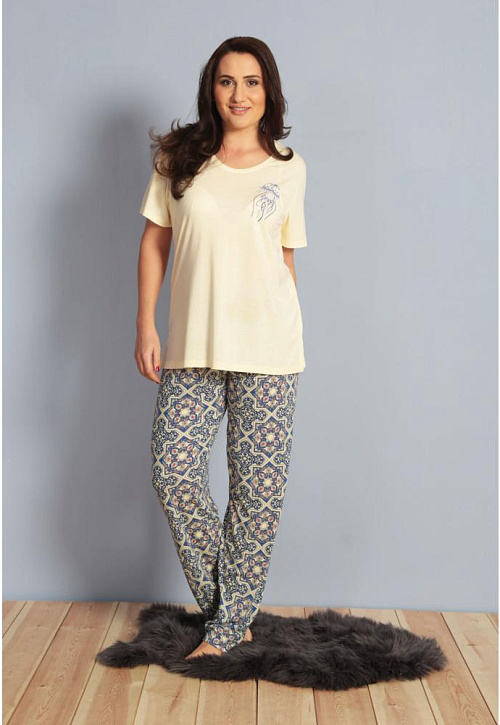 Состав изделия домашней одежды для женщины и муж. Комплект ( брюки + футболка )