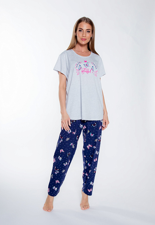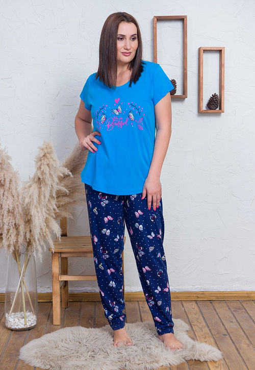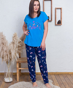 Женский домашний комплект прямого кроя. Ткань дышащая, легкая, износостойкая и маломнущаяся, а также легко стирается.