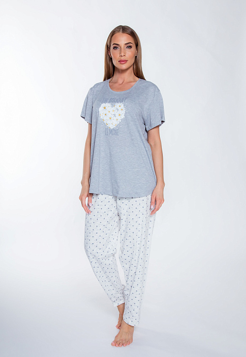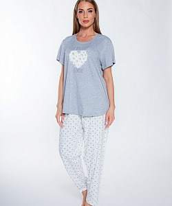 Женский домашний комплект прямого кроя. Ткань дышащая, легкая, износостойкая и маломнущаяся, а также легко стирается.