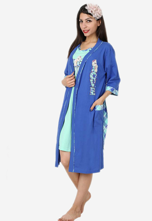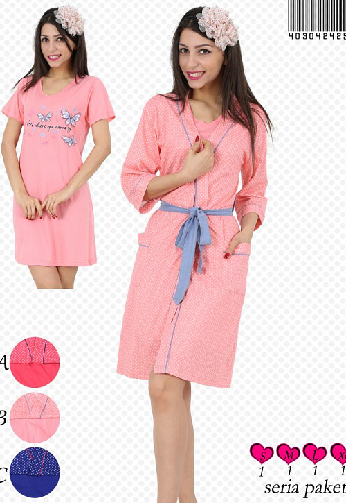 Состав изделия домашней одежды для женщины и муж. Комплект ( сорочка + халат )