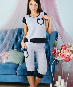 Состав изделия домашней одежды для женщины и муж. Комплект ( бриджи + футболка )