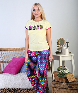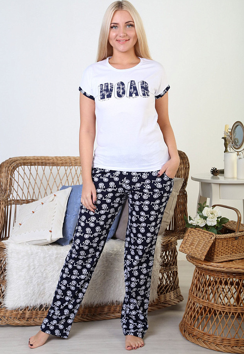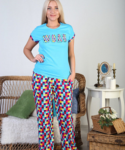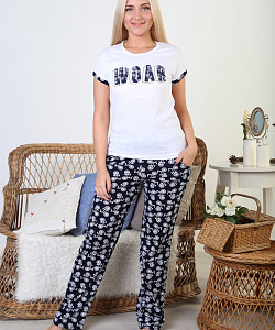 Костюм молодёжный из футболки с коротким рукавом и брюк с принтом.