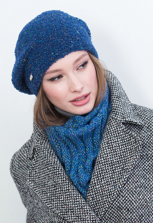 Объемный теплый двойной берет, выполнен из пряжи с 3D эффектом.